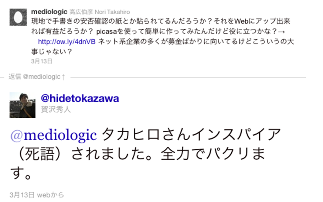 米国西海岸時間の 3 月 10 日(木)22 時(日本時間 3 月 11 日(金)15 時)前、シリコンバレーの自宅でくつろいでいた Google 社員、カ・ピン イー(Ka-Ping Yee)の携帯電話に、クライシスレスポンスチームから 1 本のメッセージが飛び込んできた。